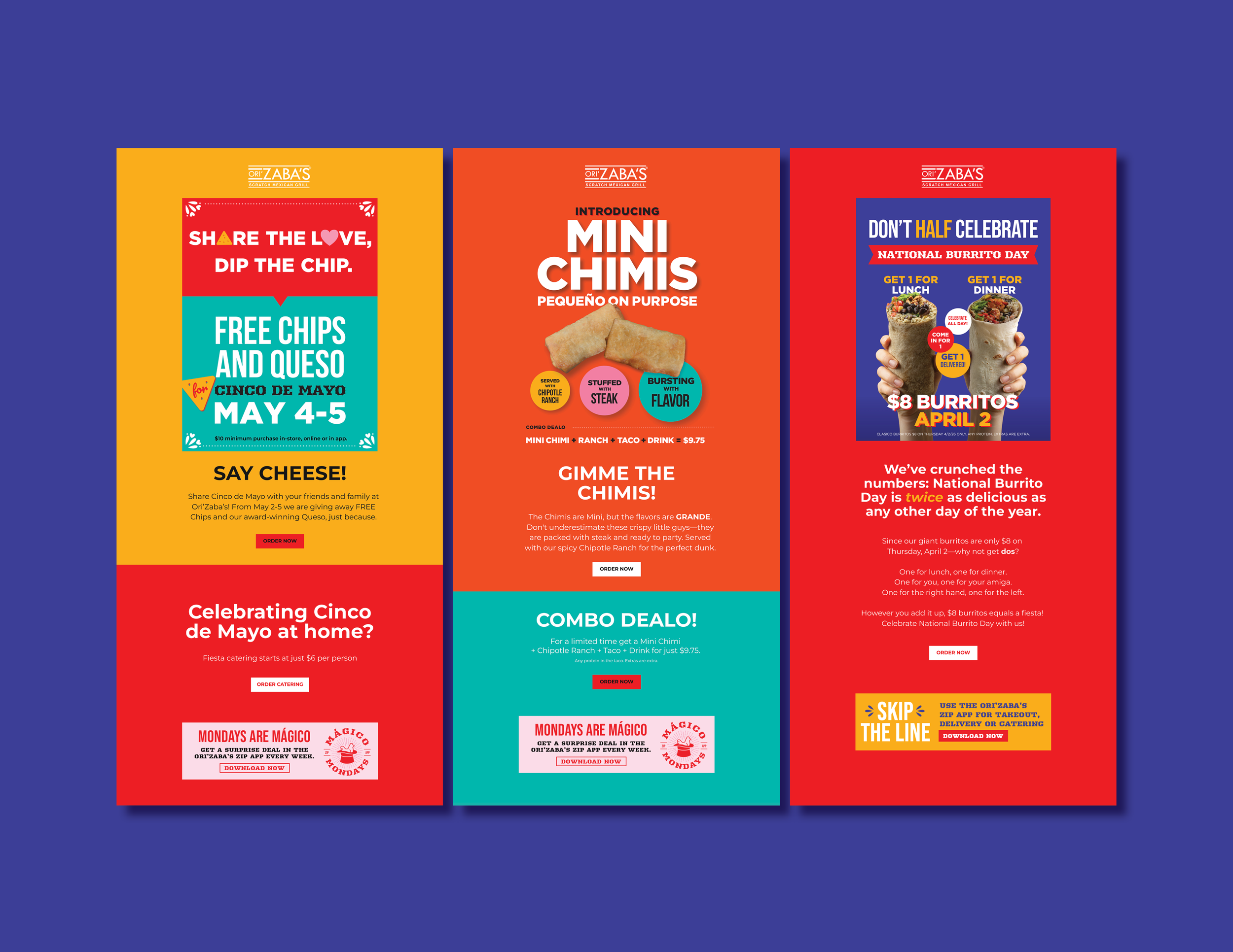 Ori’Zabas is modern Mexican street food restaurant, I supported digital marketing efforts through social media content, email campaigns, and digital promoboards. I concepted several campaign ideas and used MidJourney to generate custom imagery when specific visuals were needed. This work helped shape a consistent, engaging digital presence that aligned with the brand’s energetic, flavor-forward identity.